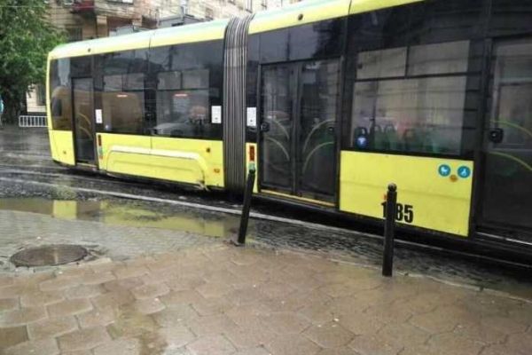 У Львові на площі Франка трамвай зійшов з рейок. Про це пише ГО «За якісний транспорт».