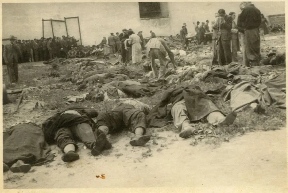 На цій світлині ви бачите трупи мешканців Львова, які були замордовані росйськомовними вбивцями у червні 1941 року в тюрмі на Лонцького. На фото ви бачите родичів і знайомих, які все ще мають надію впізнати своїх найдорожчих чи близьких людей і оглядають понівечені тіла (ця світлина, за даними Ігоря Іванькова, була зроблена між 1 та 5 липня 1941 року).