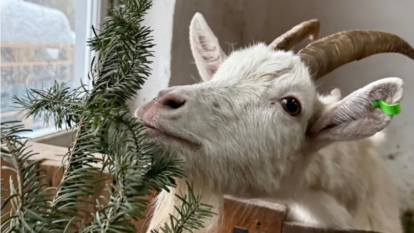 Гілки головного святкового дерева вперше передали на корм тваринам. У притулку зазначили, що ялинка урізноманітнює раціон кіз.