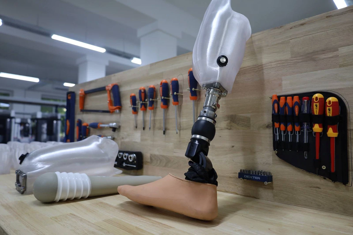 “Тут більше комп’ютеризовано, спочатку йде 3D-сканування, навчальний початковий етап. Йде 3D-друк, потім по цьому навчальному протезі відскановували і робили вже теж карбоновий, культеприймач легший, зручніший, там само відбувався підбір стоп, протезів”, — каже Роман Кулеба.