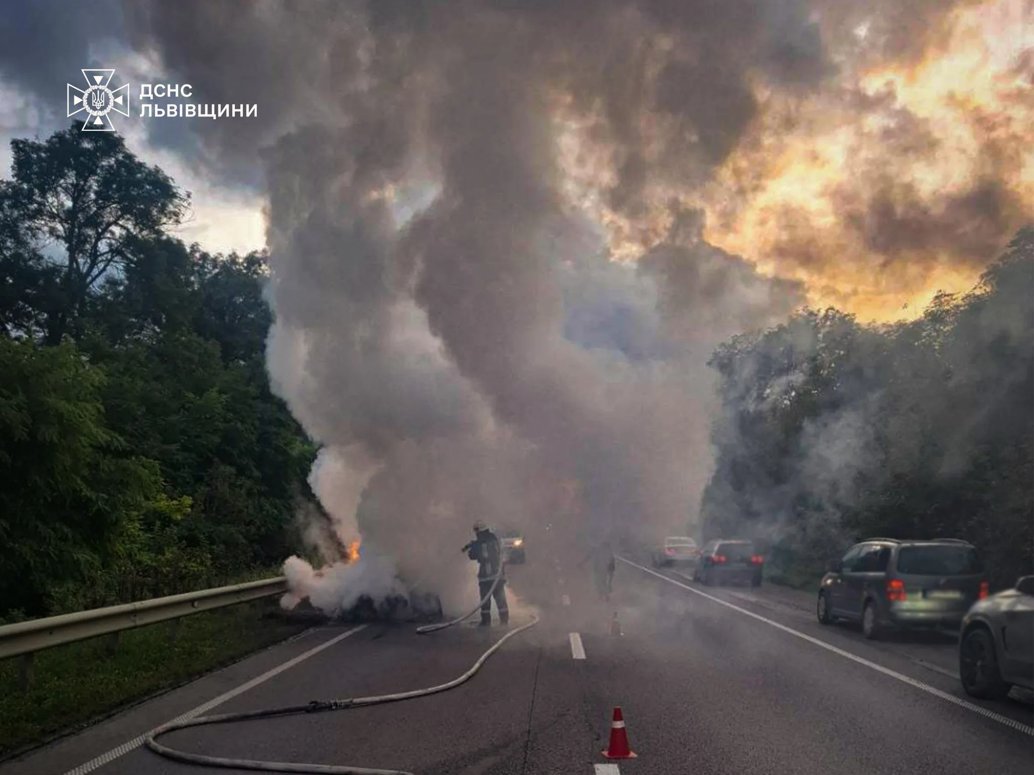 Інцидент стався на трасі Київ – Чоп поблизу села Ясенів Золочівського району. Попередньо встановлено, що легковий автомобіль марки “Mercedes-Benz” зайнявся безпосередньо під час руху.