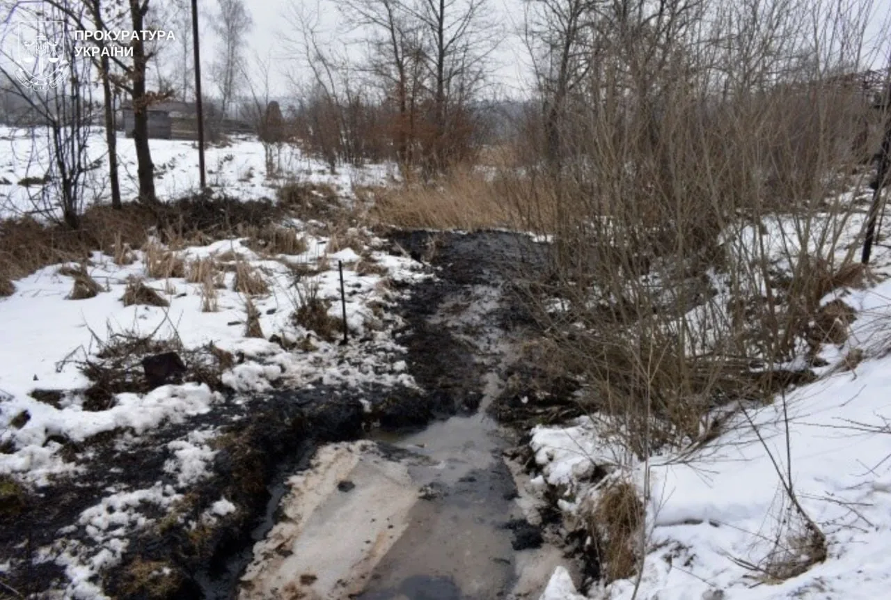 Під час огляду місця події виявлено нашарування нафтопродуктів у рівчаку та на ґрунті на площі близько 500 кв. м. Біля місця витоку також знайшли ємності з речовиною темного кольору, що має характерні ознаки нафтопродуктів.
