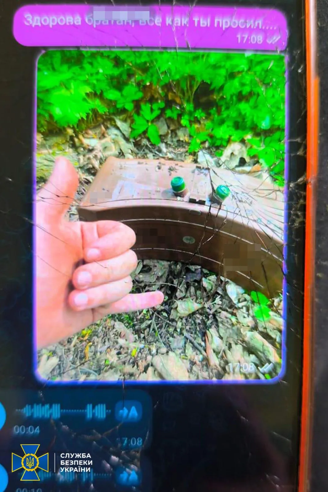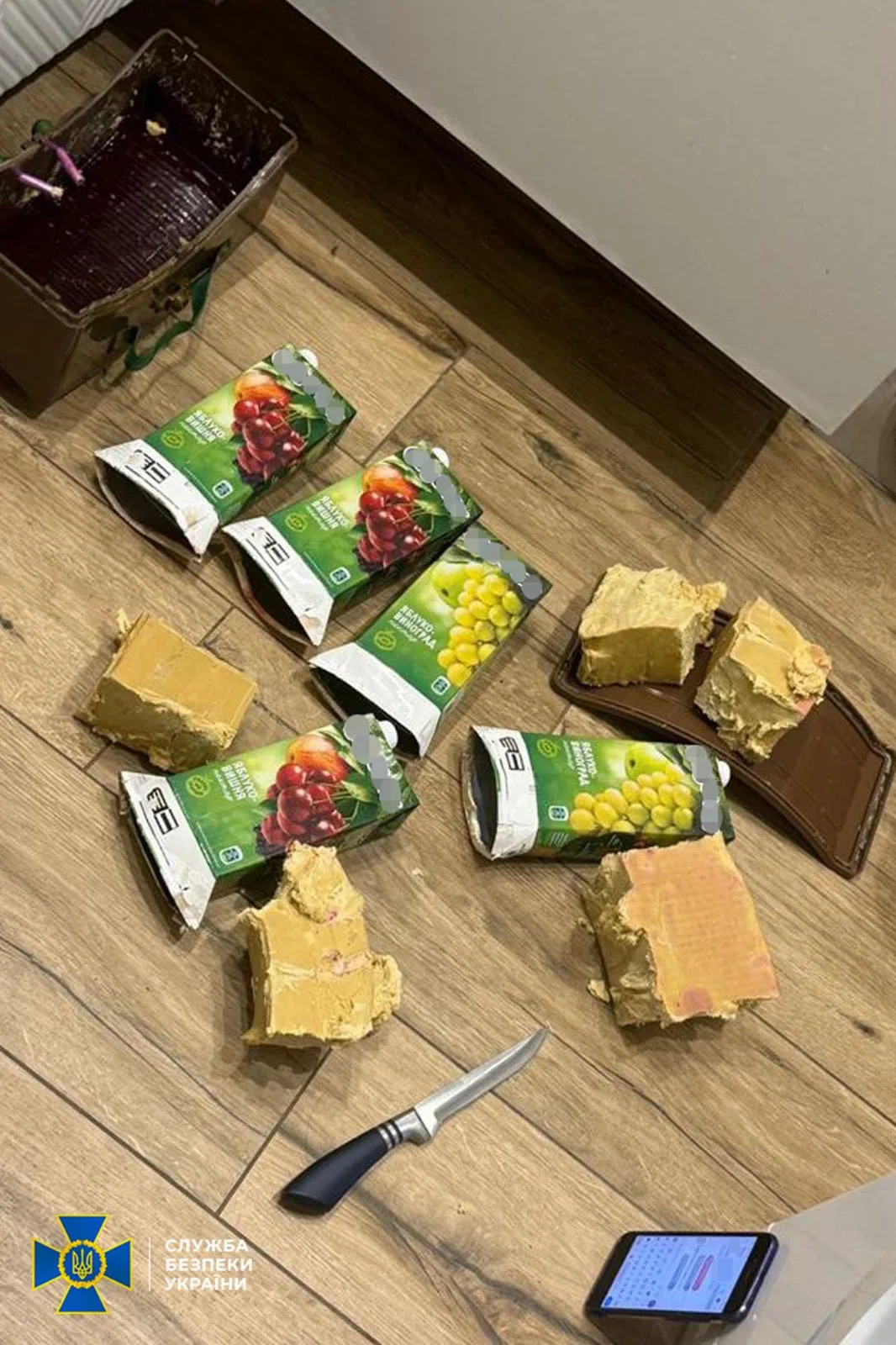 20-річний харків’янин, прибувши на захід України, за вказівкою кураторів забрав із схрону протипіхотну міну, вилучив пластид, поділив його на частини та замаскував у коробки з-під соку. Після цього створив нову схованку.