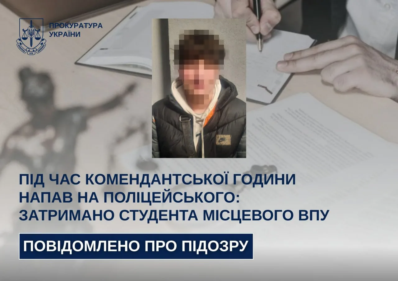 За процесуального керівництва Галицької окружної прокуратури міста Львова юнакові повідомлено про підозру у вчиненні насильства щодо працівника правоохоронного органу.